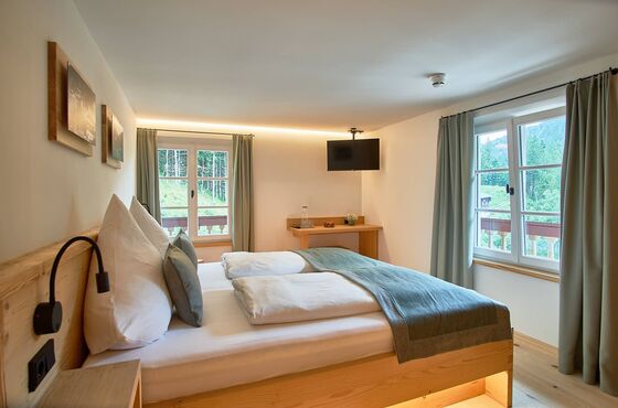12 liebevoll renovierten Doppel- und Familienzimmern in den oberen Stockwerken des Forsthauses